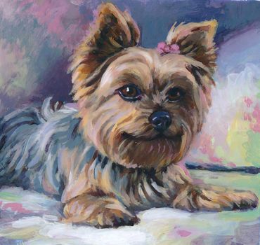 As a professional artist, I have completed over 30 custom commissions for my clients. I specialize in creating stunning, colorful portraits of dogs, cats, birds, children, family members, or any cherished loved ones you'd like to celebrate with a beautiful work of art. I'm happy to work with you to cater to what you envision. Here is an example of starting prices for my commissioned portraits: